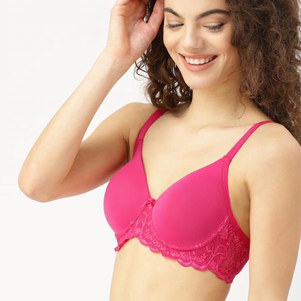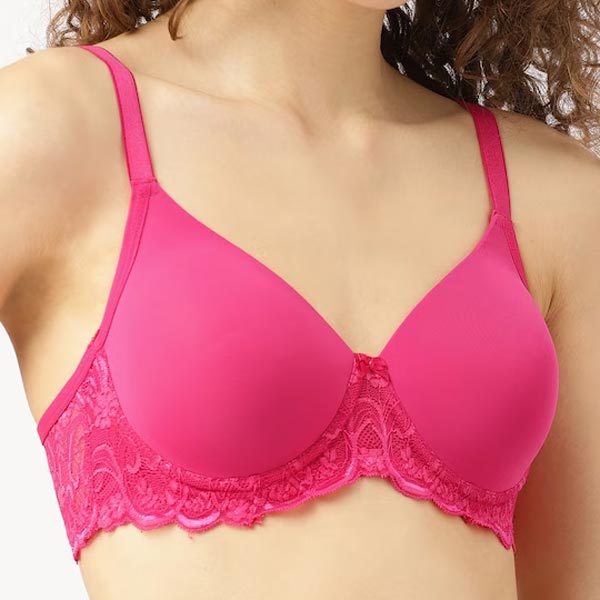 Pink lace full-coverage Everyday bra Lightly Padded and Underwired seamless cups Regular straps and back closure Back style: Regular Feature: All Day Comfort